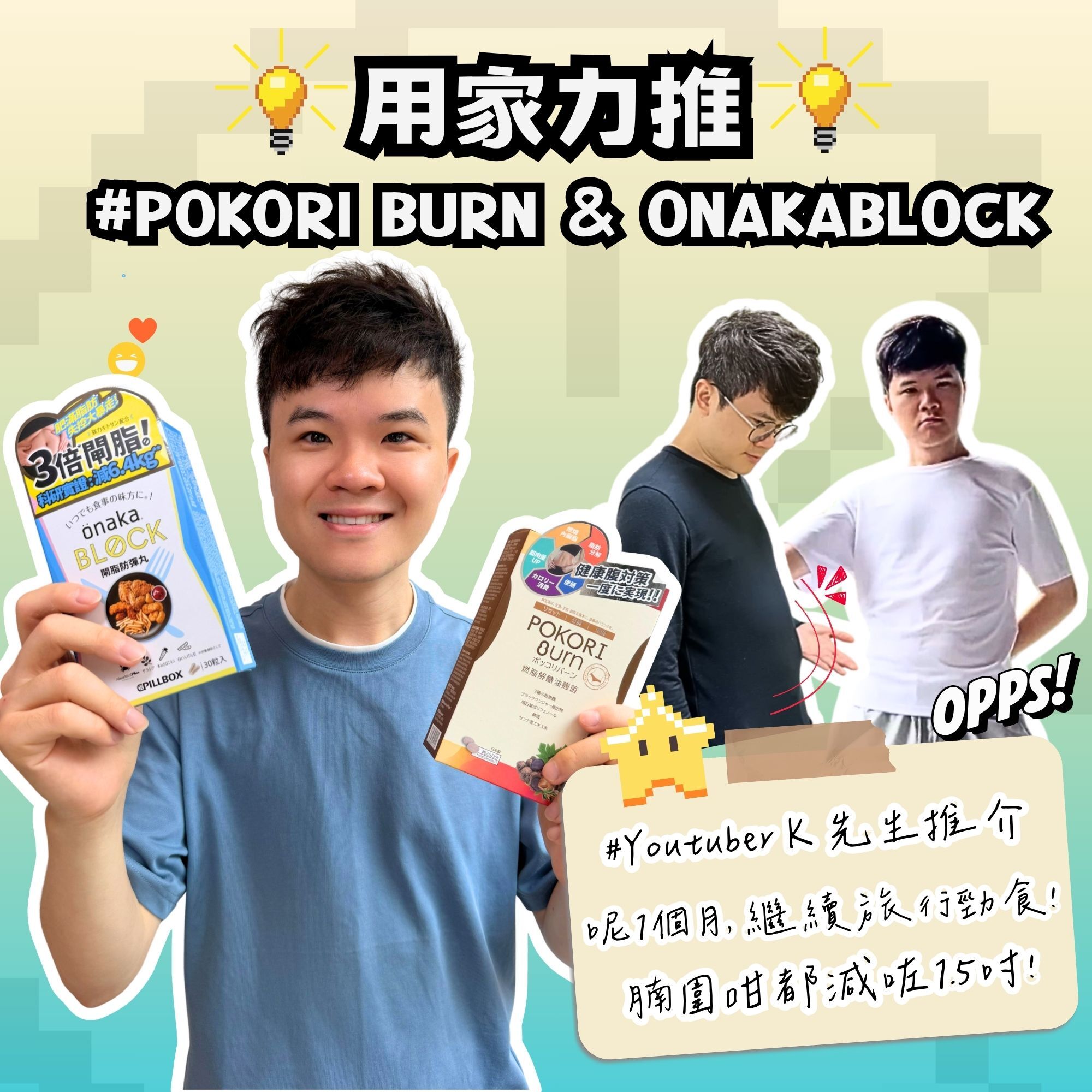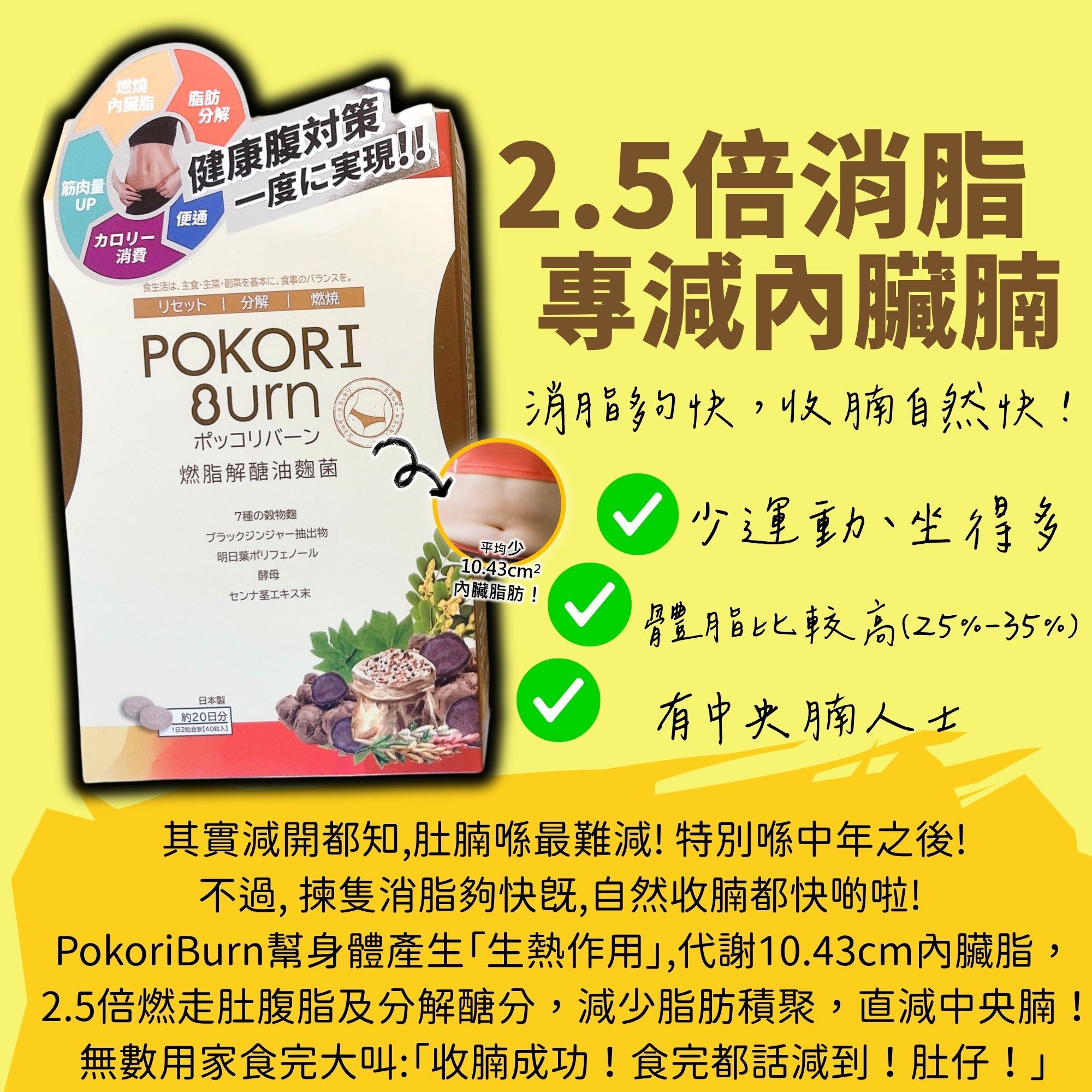 🌟午餐/晚餐前食2粒【POKORI BURN 燃脂解醣油麴菌】適合少運動、坐得多、有中央腩人士