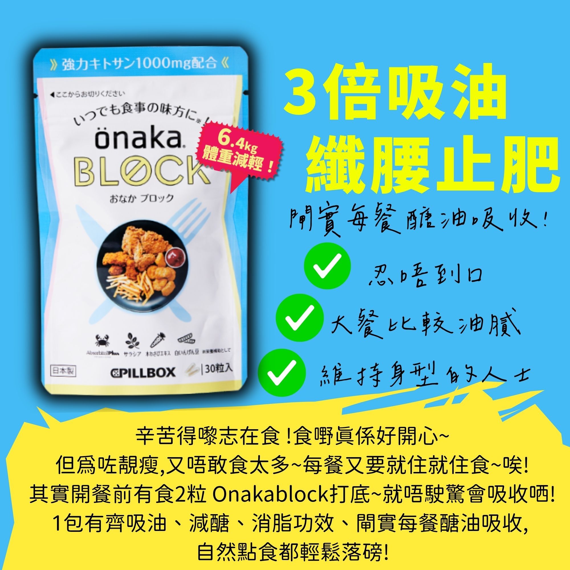 🌟午餐/晚餐前食2粒【OnakaBlock 閘脂防彈丸】適合忍唔到口、大餐比較油膩、維持身型的人士