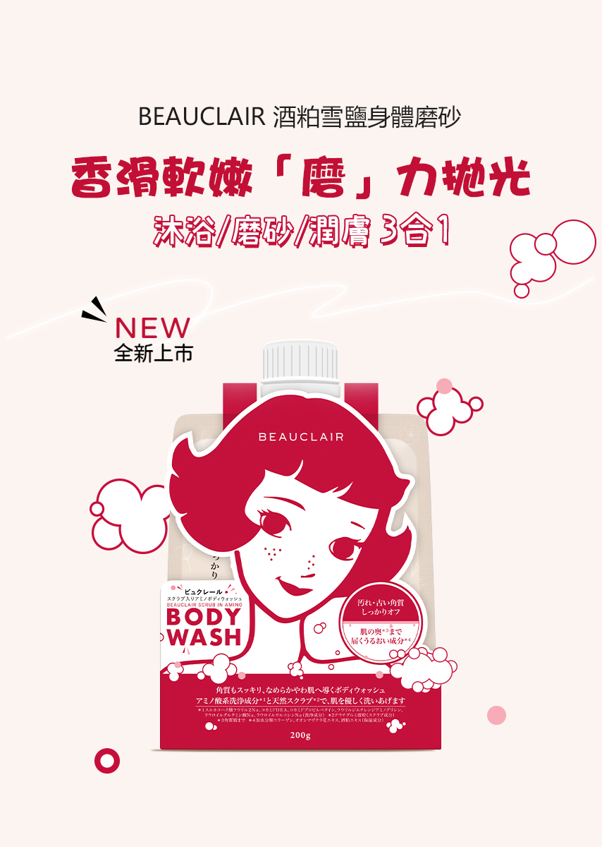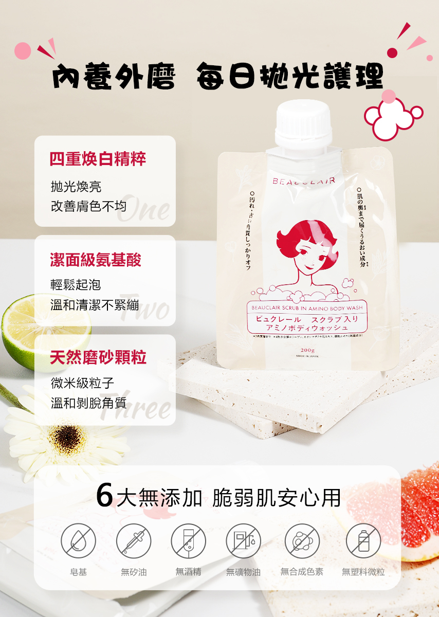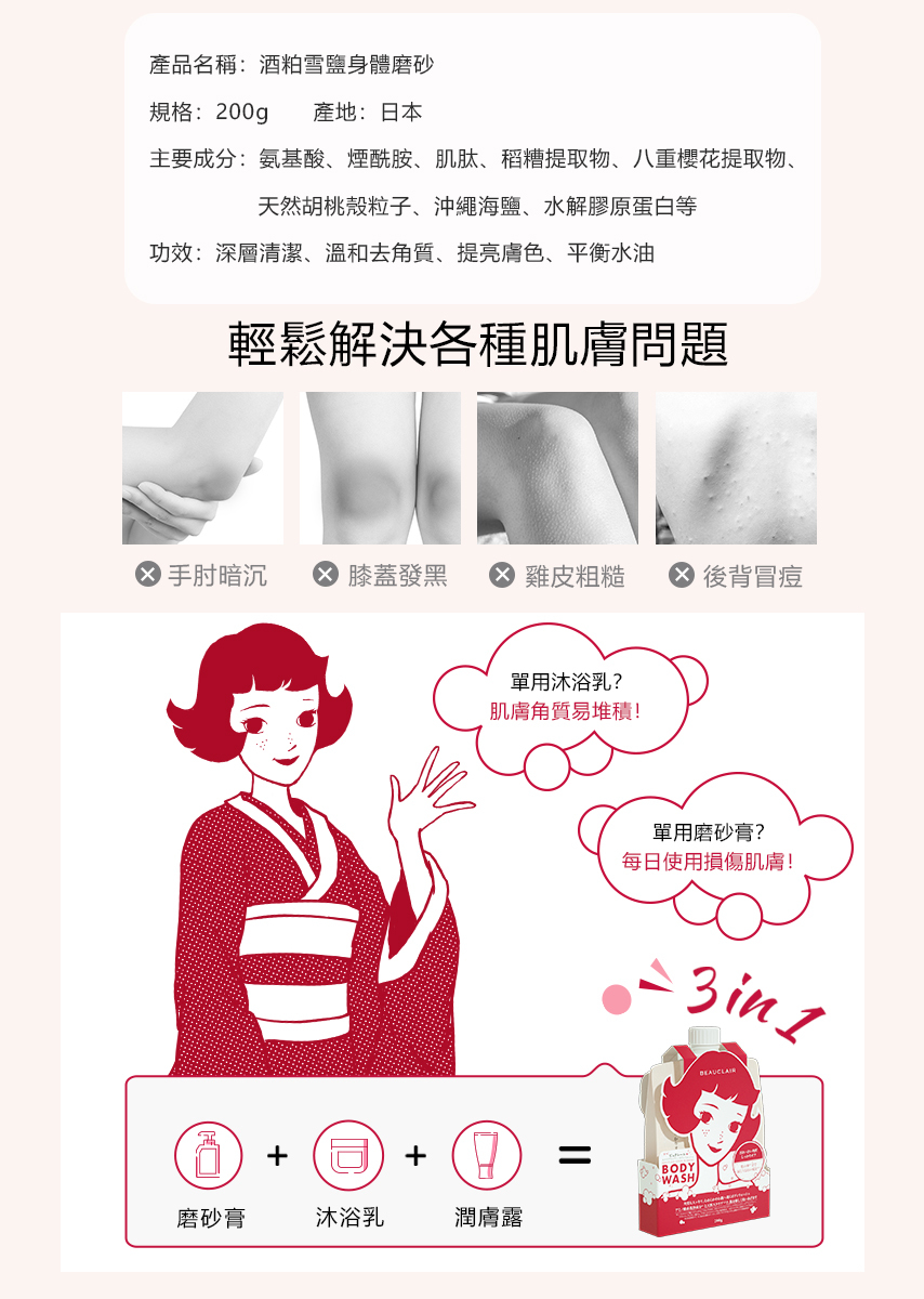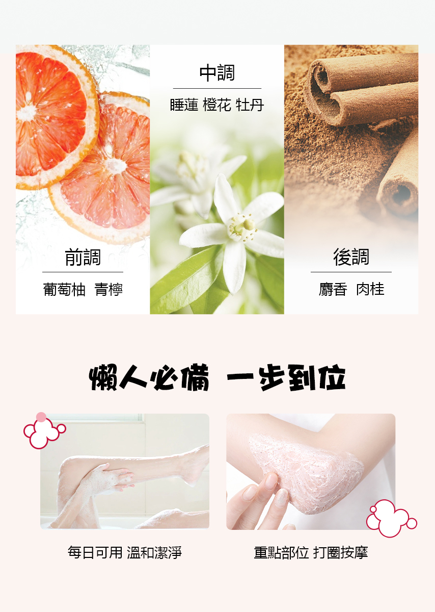 結合 沐浴+磨砂+潤膚 3大嫩膚功能