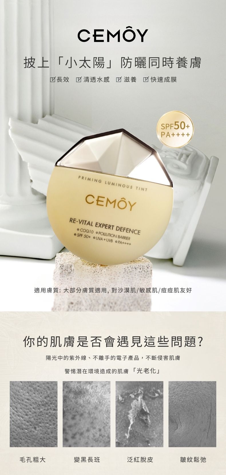 ● 防晒+6大養膚成分,防禦 同時 養膚