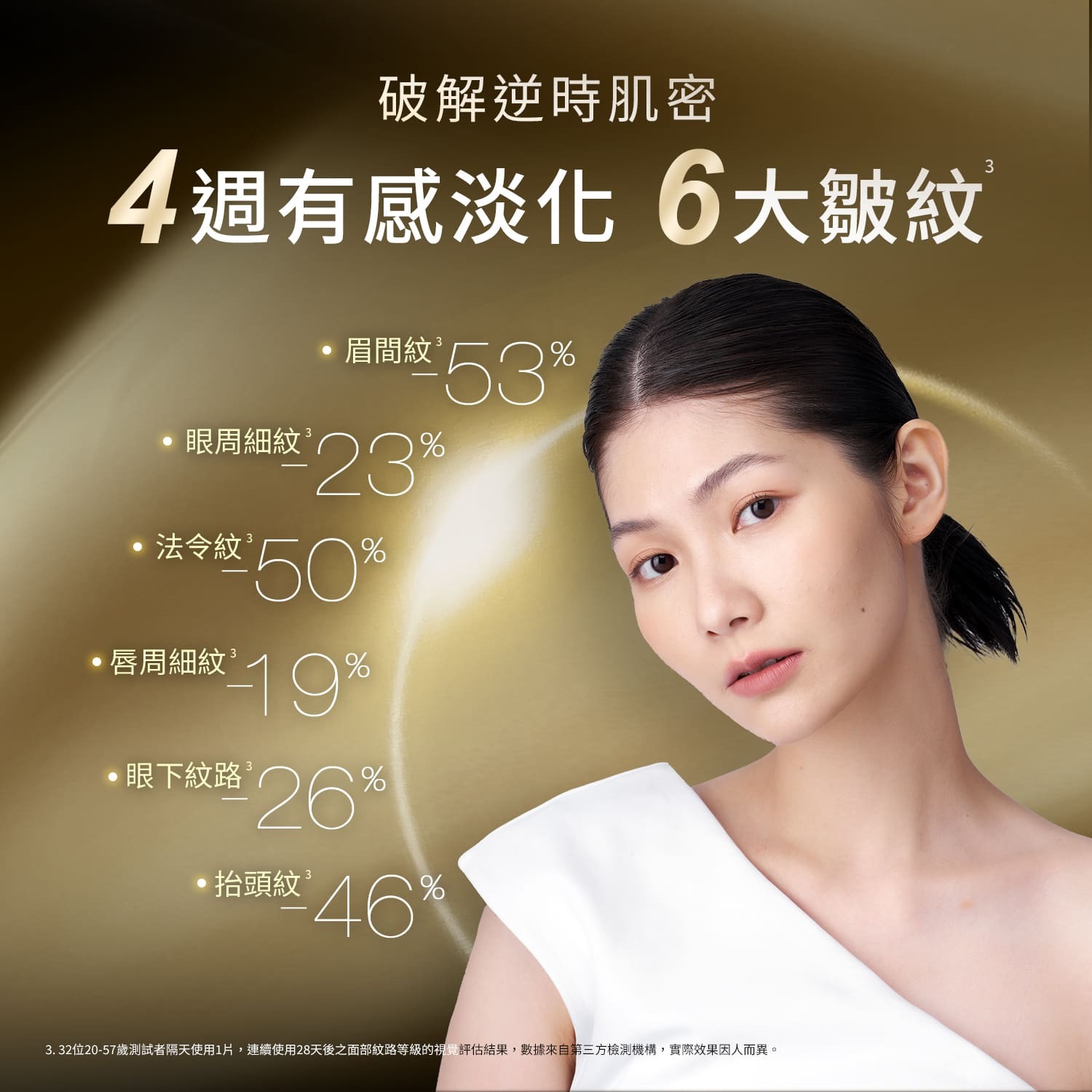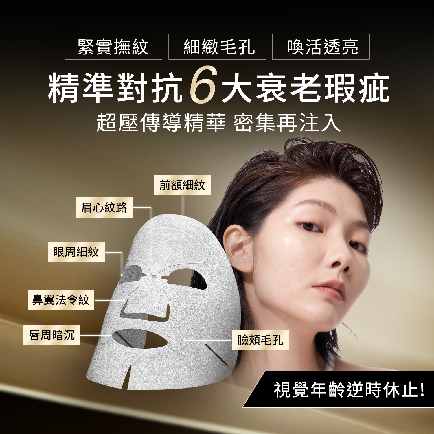 黑洞級完美貼合吸附,4週逆時抗痕!經典面膜全新升級,雙層式加壓面膜精準傳導修護6區瑕疵,強化淡紋,復返細滑透亮
