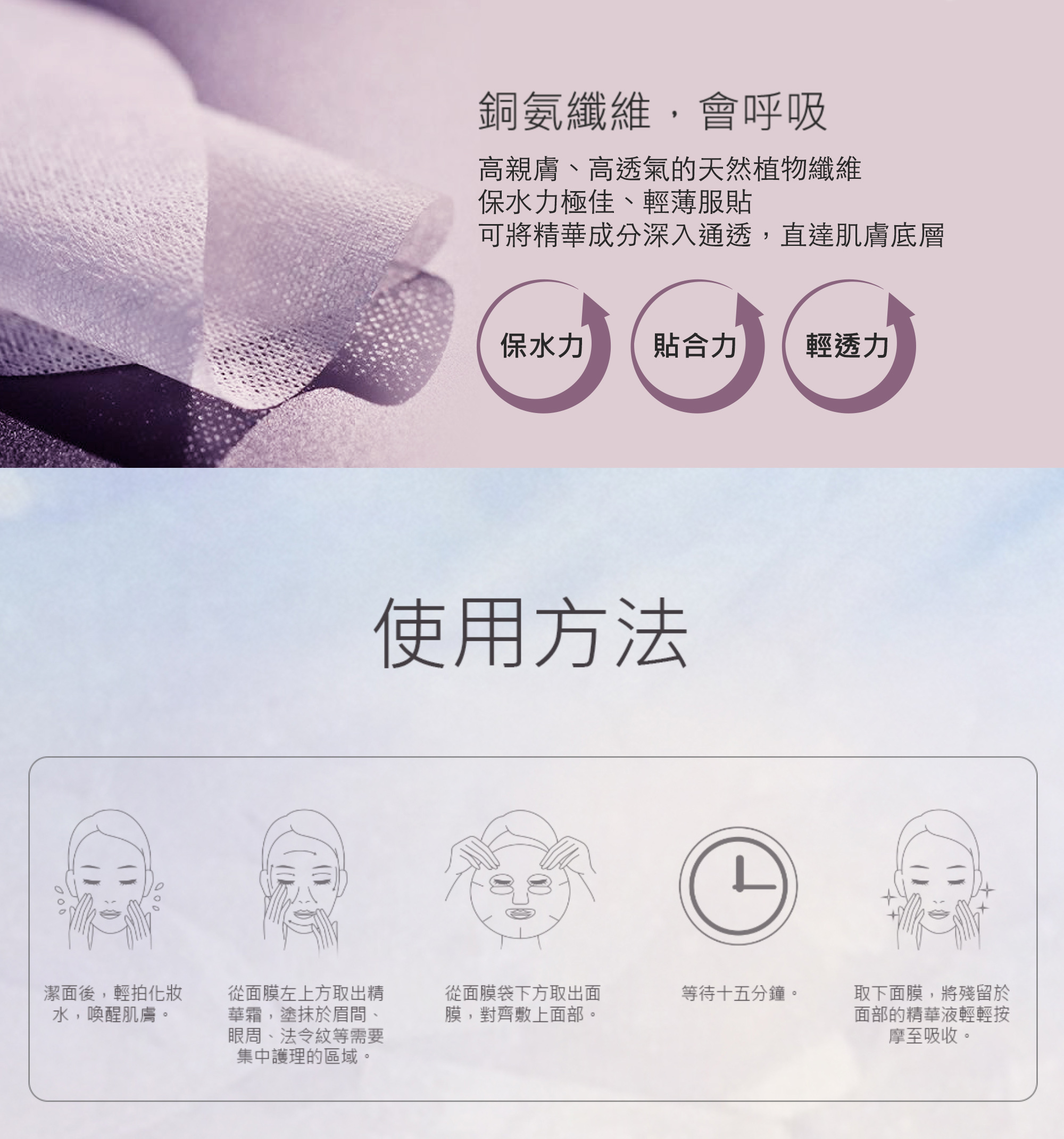 1按2敷設計,每片獨立附有「幹細胞奢養霜」,針對眼紋、虎紋、毛孔位置,滲透率特高