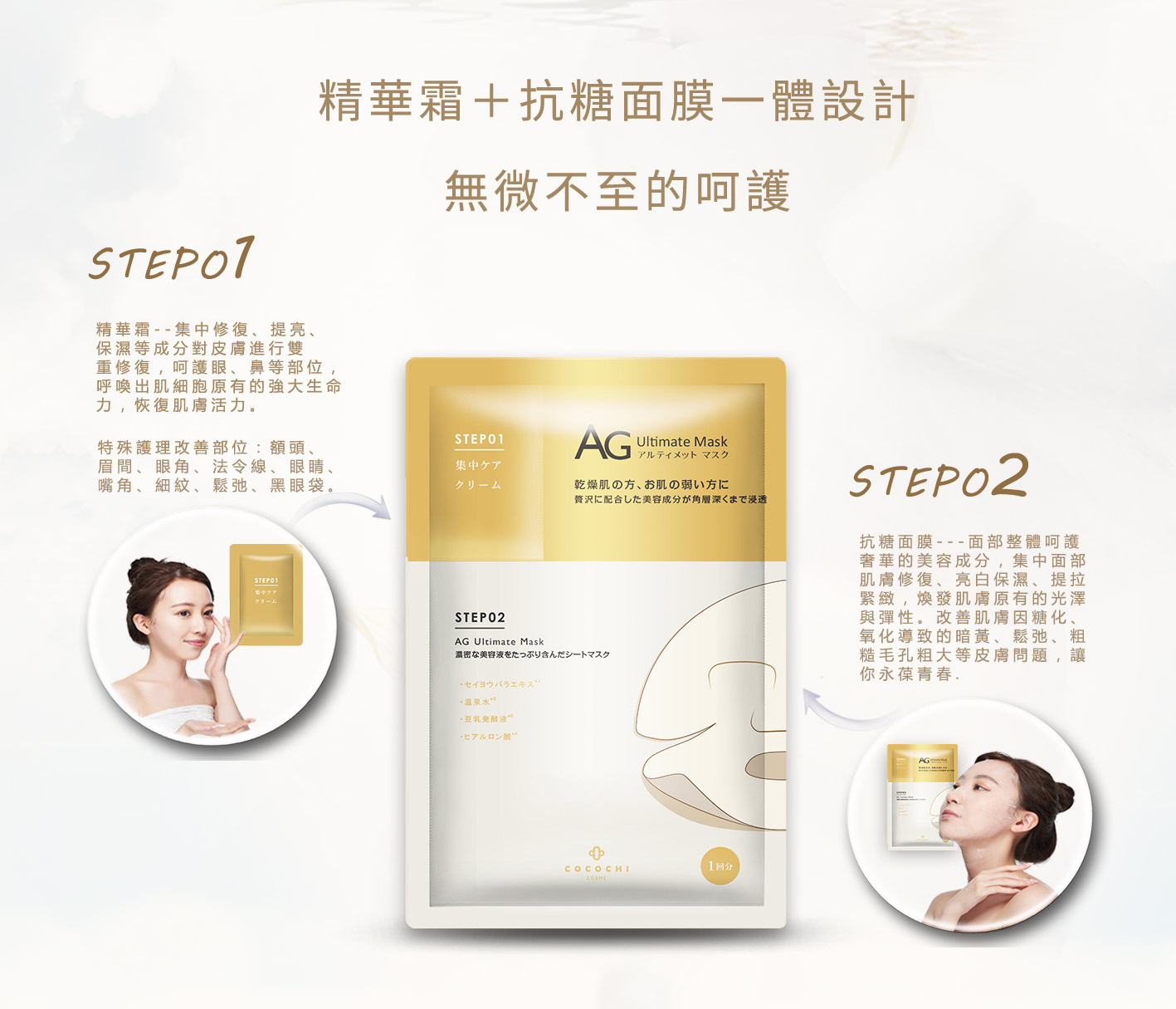 1按2敷面膜,每片獨立附有「幹細胞奢養霜」,滲透率特高,超適合成熟鬆弛肌!