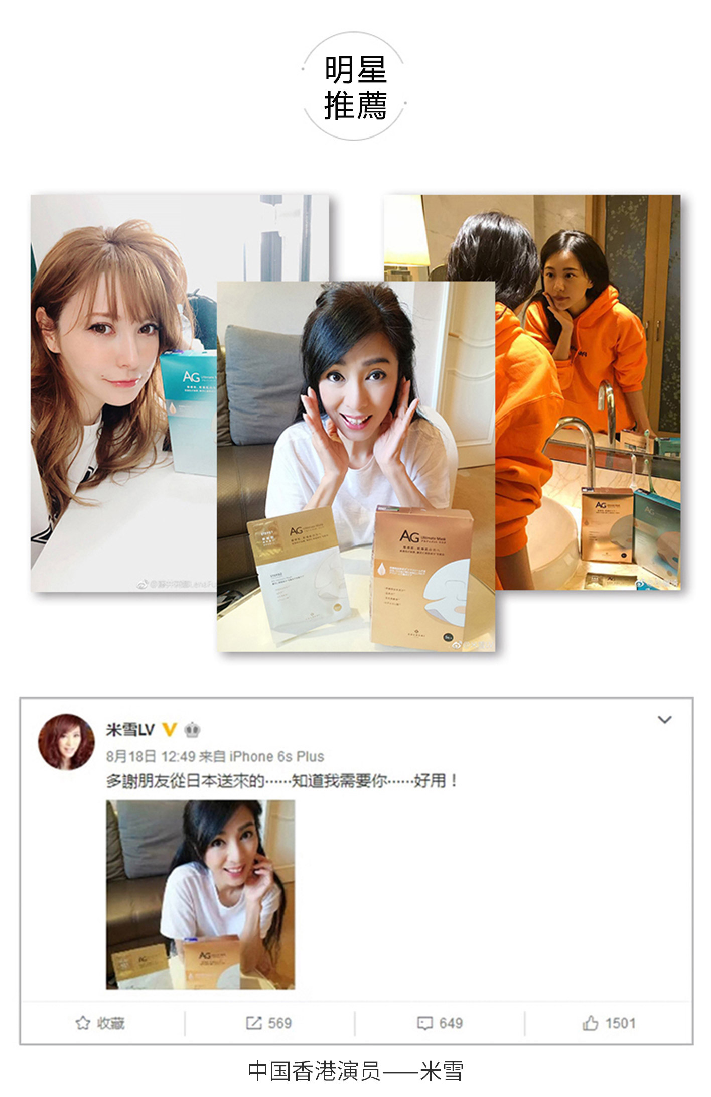 【注意及保存】1.皮膚有傷口、腫脹,濕疹等情況,請勿使用本產品。2.使用中或使用後如發現肌膚出現發紅、發癢、敏感、斑點等異常情況,請停止使用本產品,並向皮膚專家諮詢。3.如繼續使用其他護膚品,有可能導致情況惡化。4.日曬後,如皮膚出現紅腫現象,待紅腫現象消退後再使用本產品。5.本產品開封後請儘快使用。6.使用後的面膜請不要再次使用。7.請避開嬰幼兒能觸及的地方。8.請存放在陰涼乾燥及避免陽光直射的地方。Caution & Storage: 1.Do not use this product if you have any wounds or are suffering from skinallergies. 2. If skin irritation occurs, stop using and consult a physician. 3.The situation may get worse if continue use of other skincare products. 4. Donot use this product if you have sunburn. 5. Please use this product rightafter opening. 6. The mask can be used one time only. 7. Keep away fromchildren. 8. Store in cool & dry place, avoid direct sunlight.