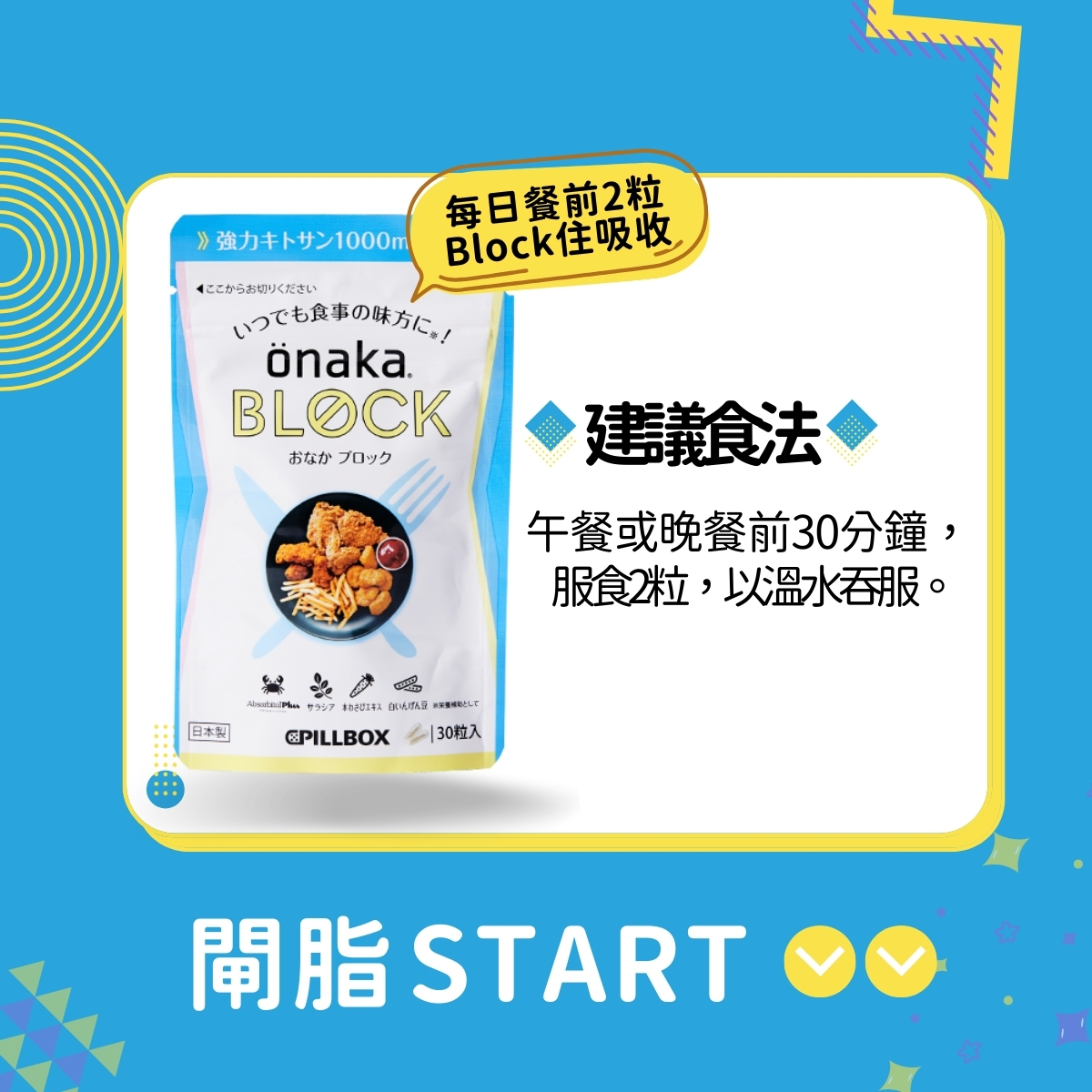 日本Onaka Block特有3合1閘脂配方,有效弱化脂肪活躍度,促進燃燒活性脂肪細胞,有助降低腸胃吸收壞脂,減少多餘積聚,加快消耗進餐時的卡路里。