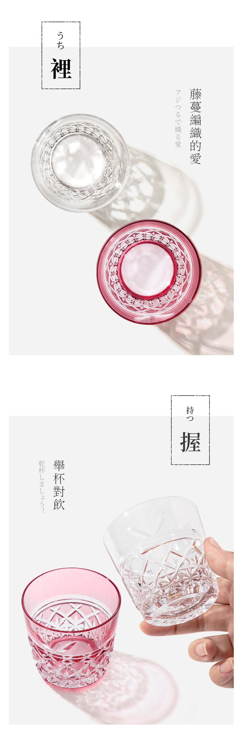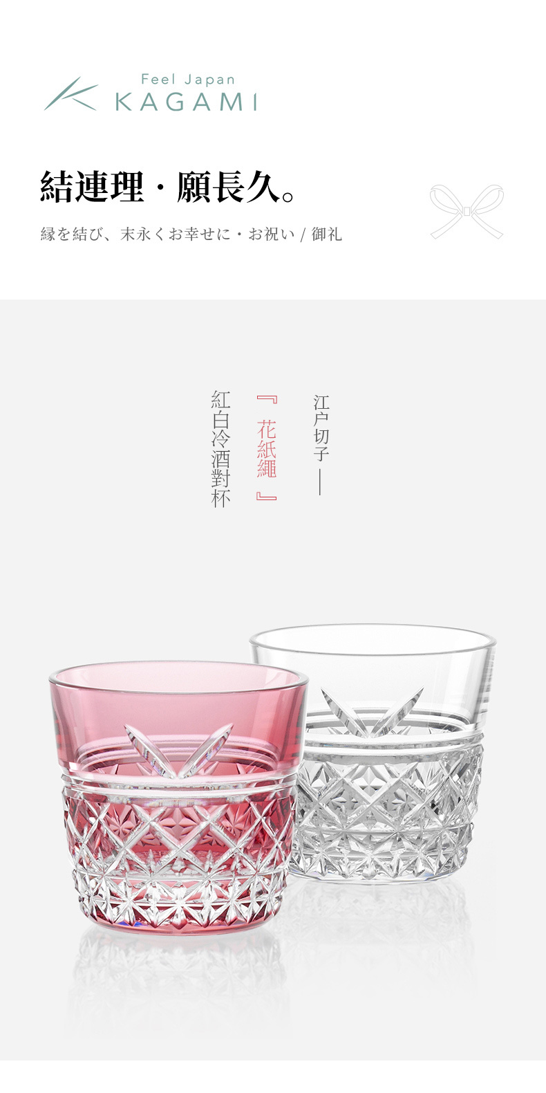 日本KAGAMI江戶切子系列 - 花紙繩日式清酒對杯(紅白)
